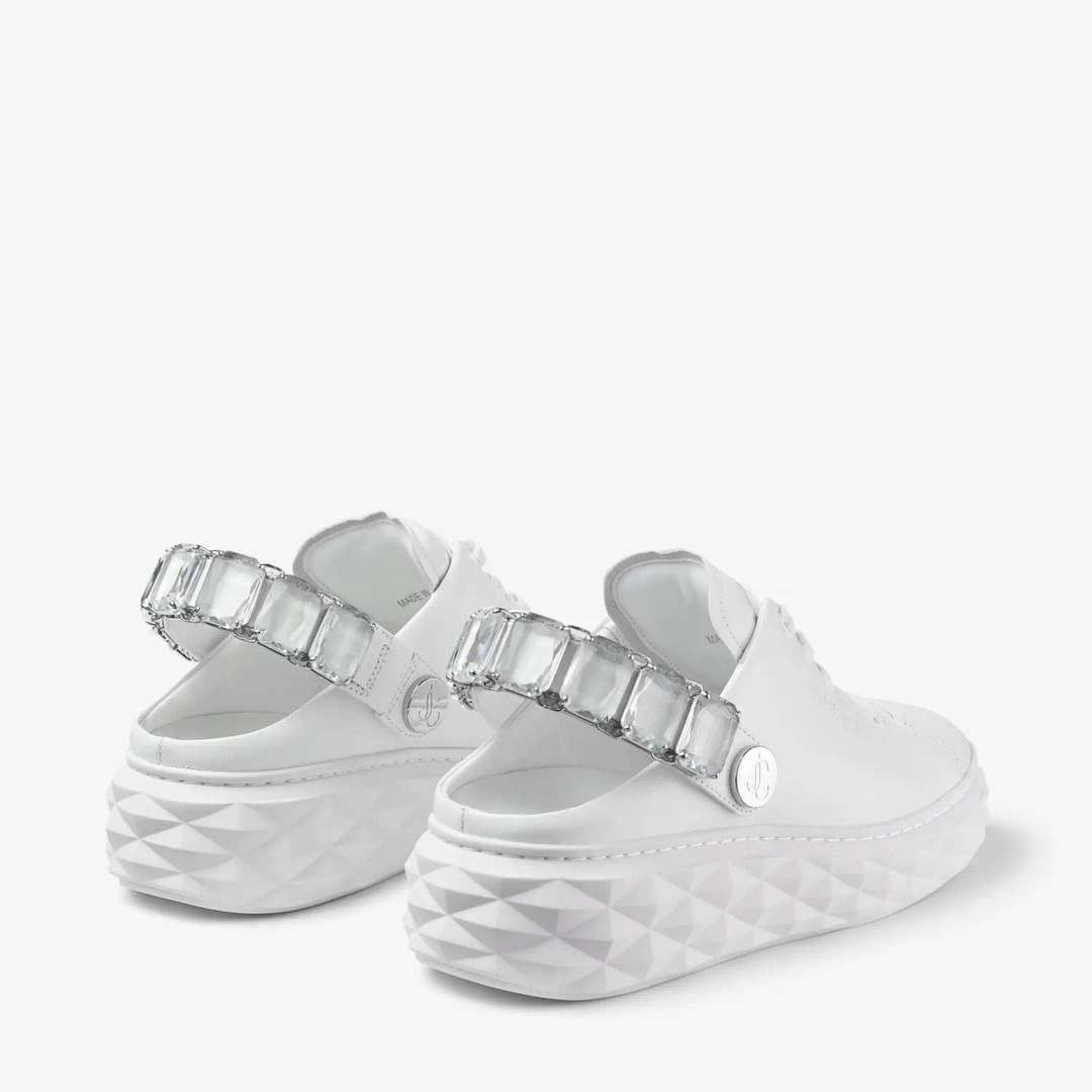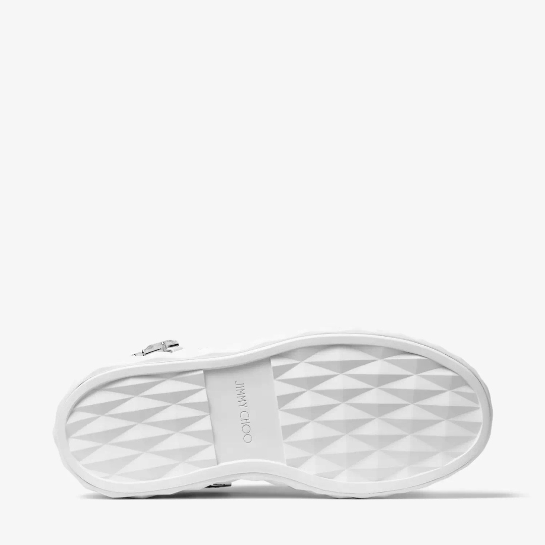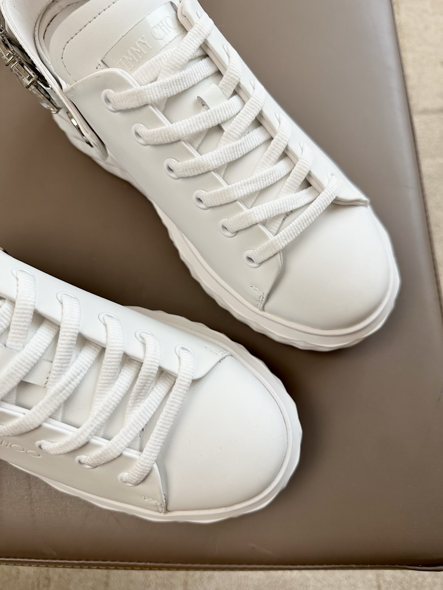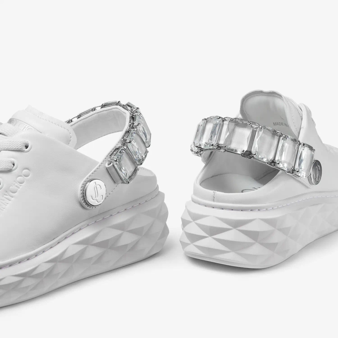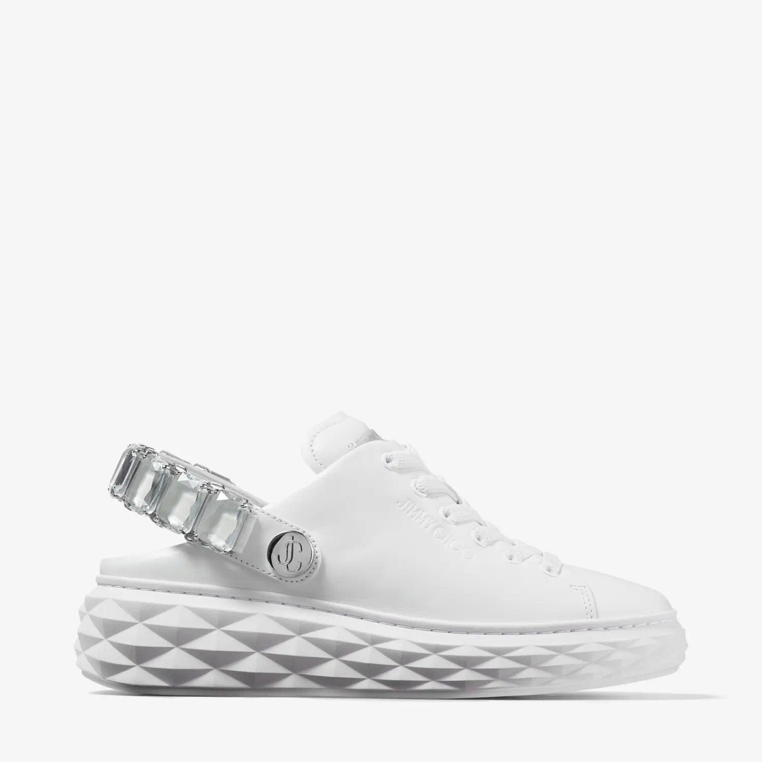 지미추 크리스털 스트랩 디테일 화이트 나파 가죽 슬리퍼 스니커즈