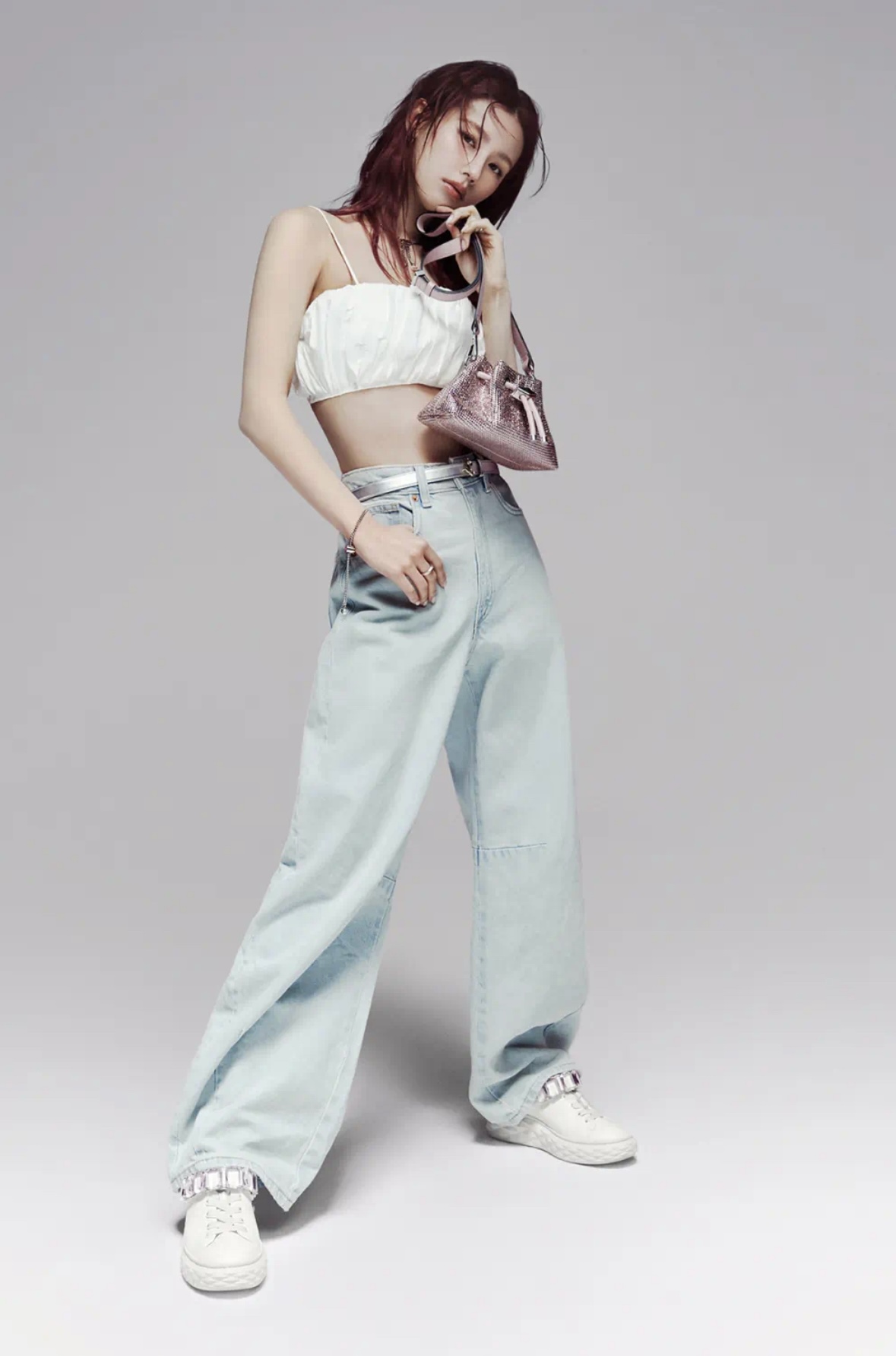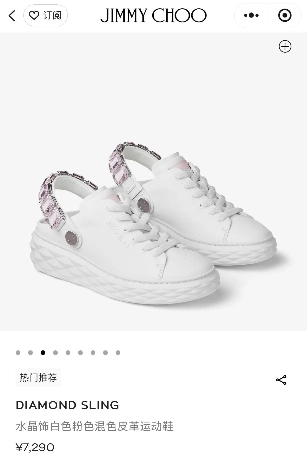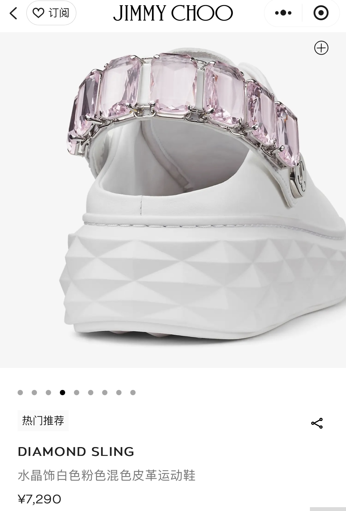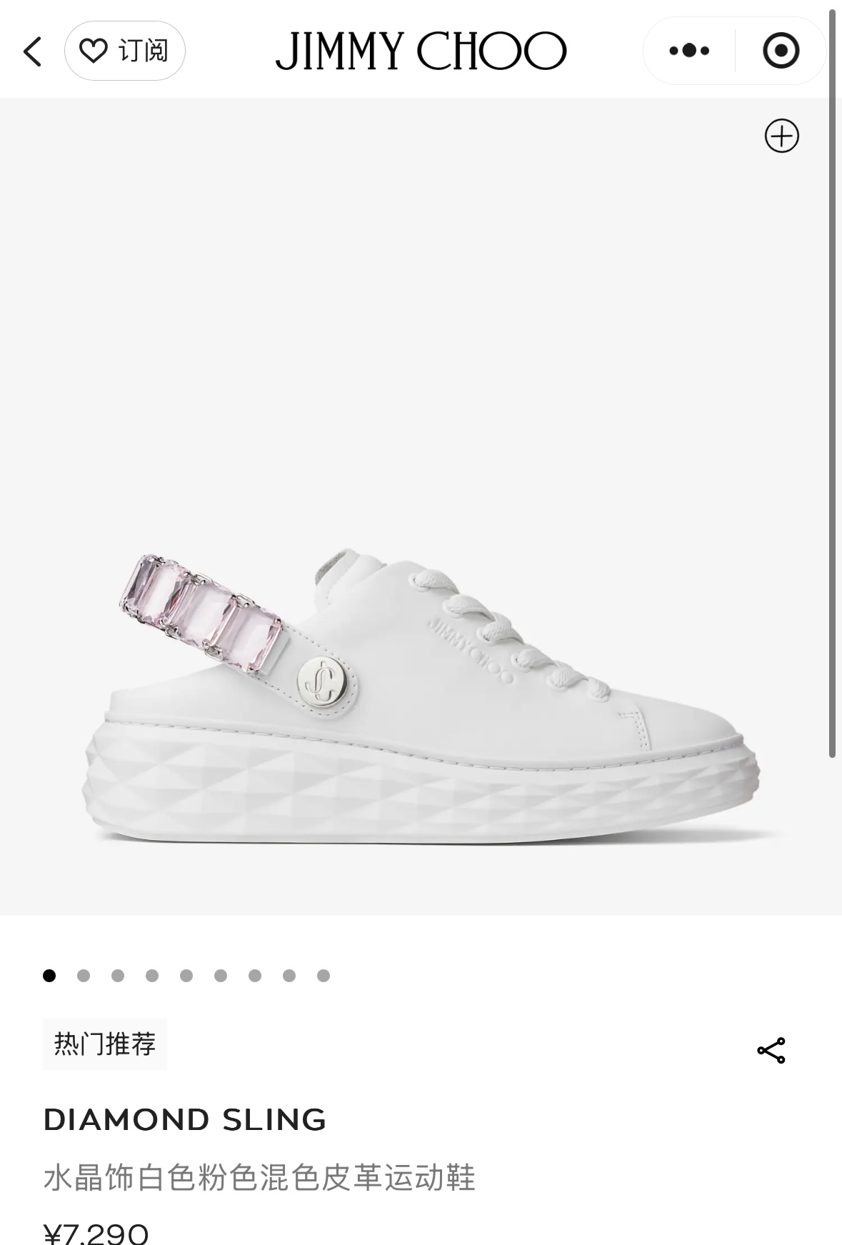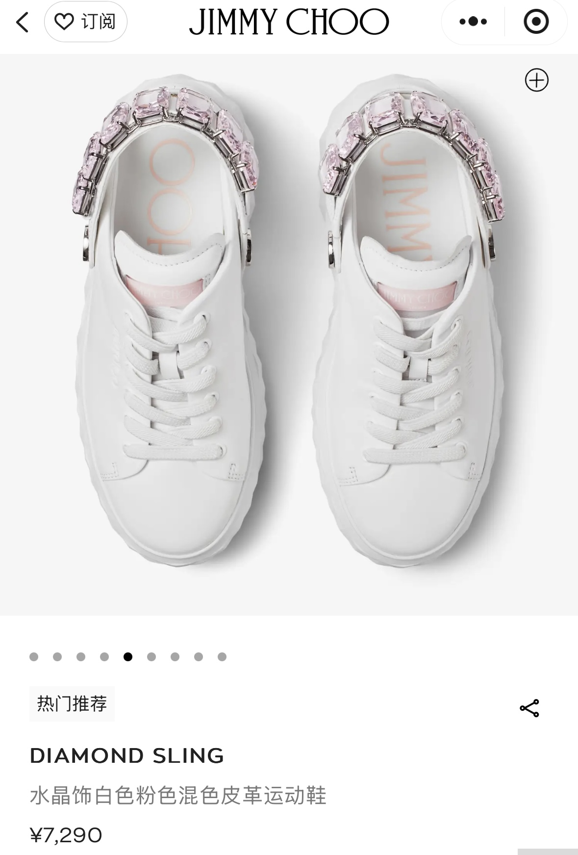 지미추 크리스털 스트랩 디테일 화이트핑크 나파 가죽 슬리퍼 스니커즈