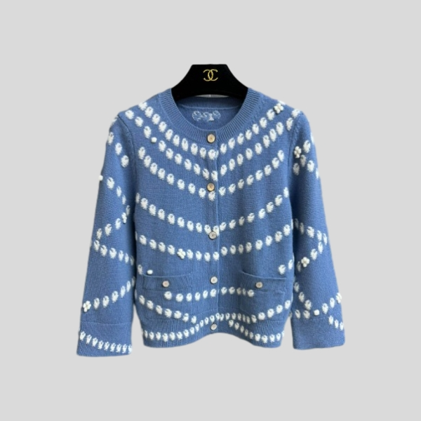 셀린느 페어 아일 가디건 모헤어 실크 블루 오프 화이트