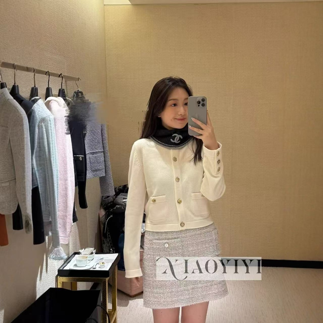 셀린느 페어 아일 가디건 모헤어 실크 블루 오프 화이트
