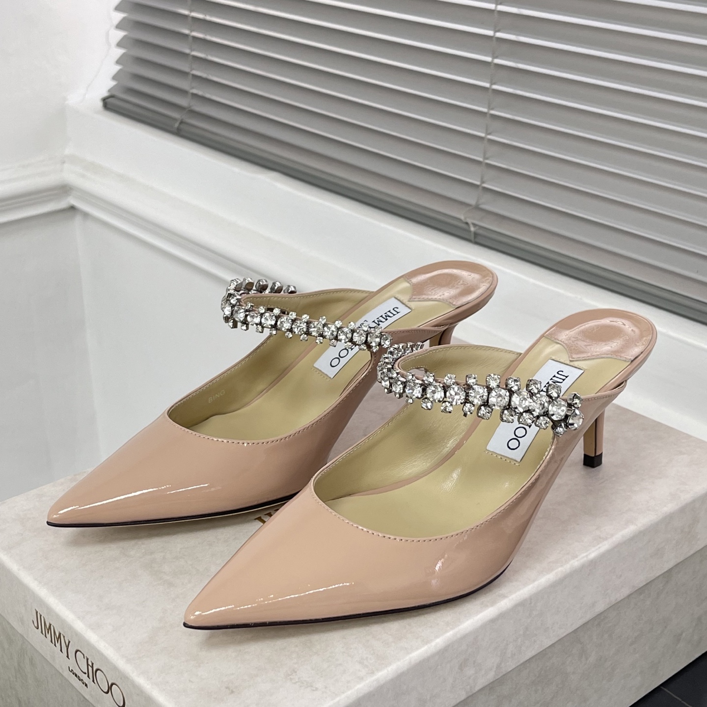 지미추 크리스탈 스트랩 뮬 (6.5cm) > OTHERS
