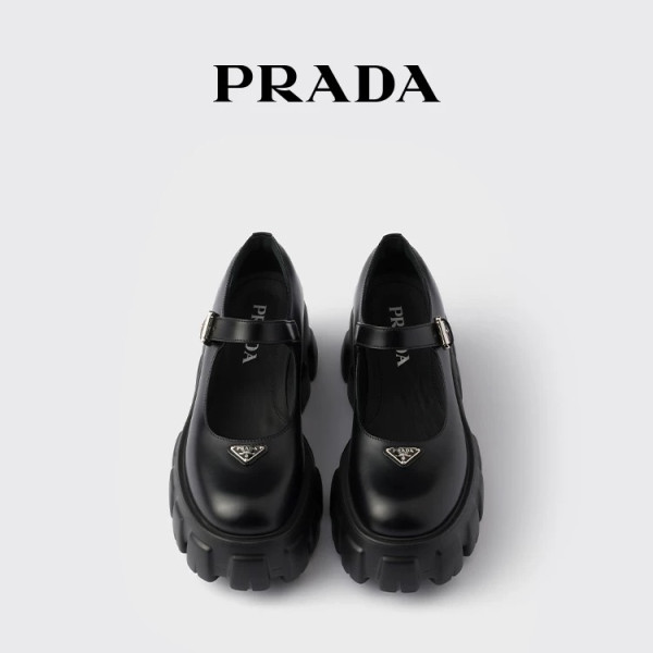 프라다 브러시드 레더 삼각로고 로퍼 1D246M