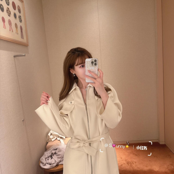 미우미우 더블브레스트 파나마 코튼 트렌치 코트