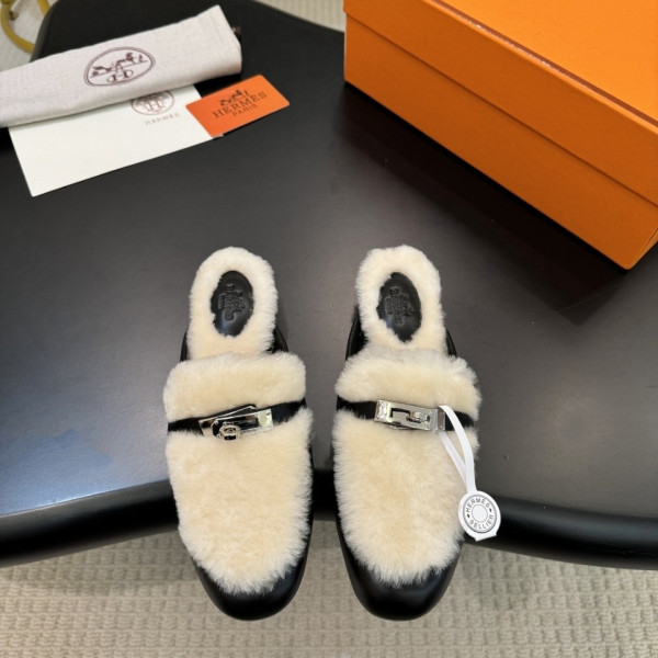 에*메스 25 가을 겨울 신상 켈리 털 슬리퍼 > HERMES