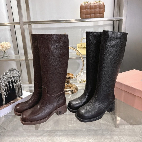 미*미* 라운드 가죽 앵클부츠 > MIU MIU