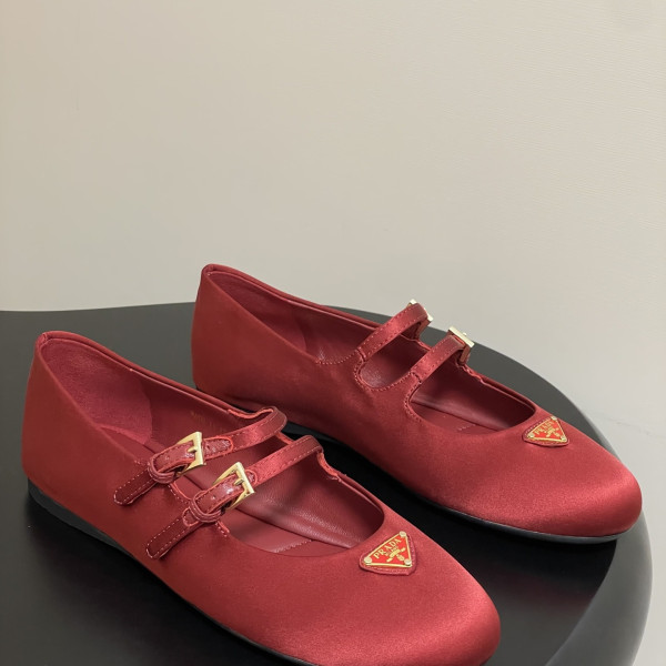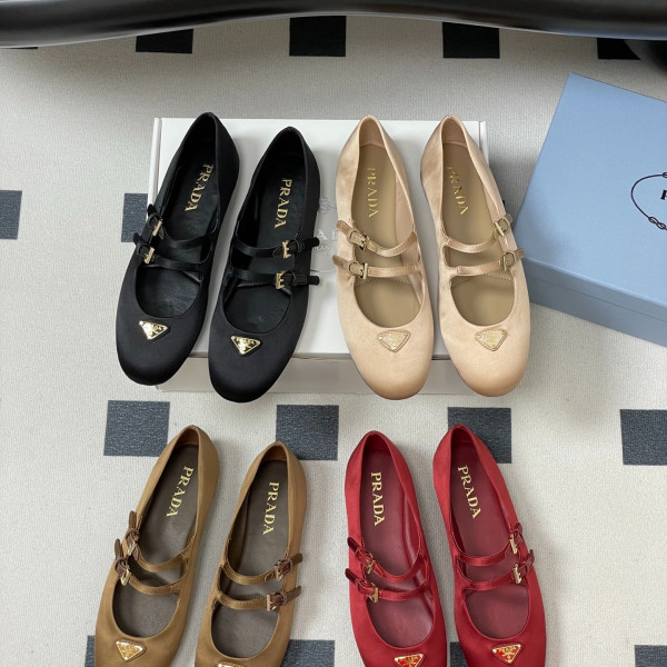 프*다 실크 새틴 발레 메리제인 플랫