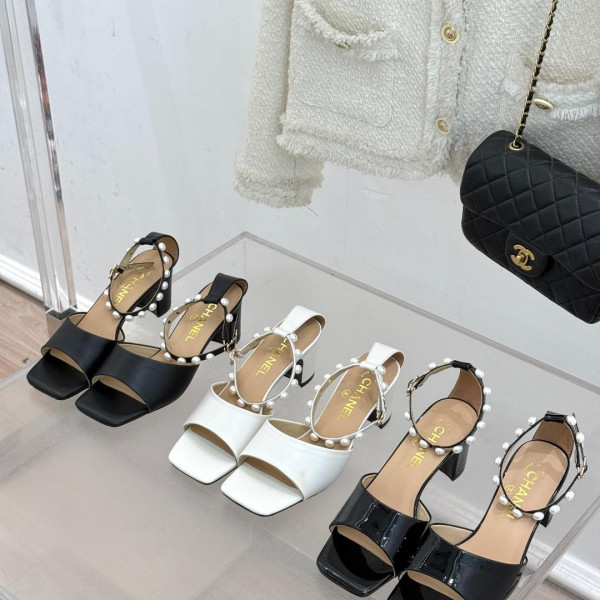 샤* 25c 신상품 더블 C 진주 통굽 샌들 > CHANEL