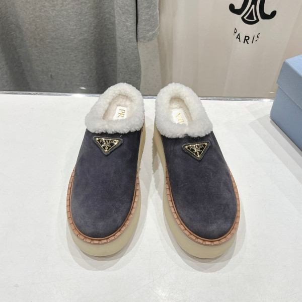 프*다 25ss 신상 털 통굽 세미 슬리퍼 > PRADA