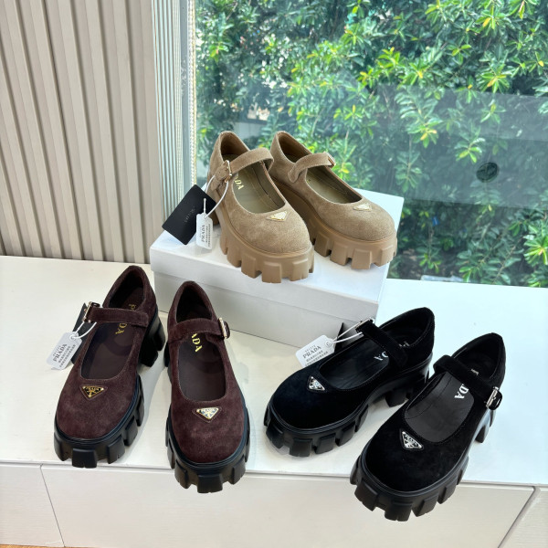 프*다 25Fw 최신 메리제인 통굽 펌프스 로퍼 > PRADA
