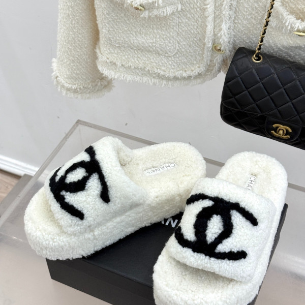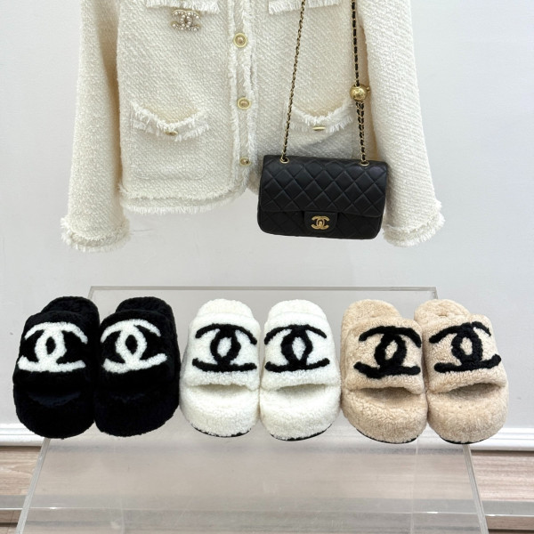 샤* 클래식 더블C 통굽 퍼 슬리퍼