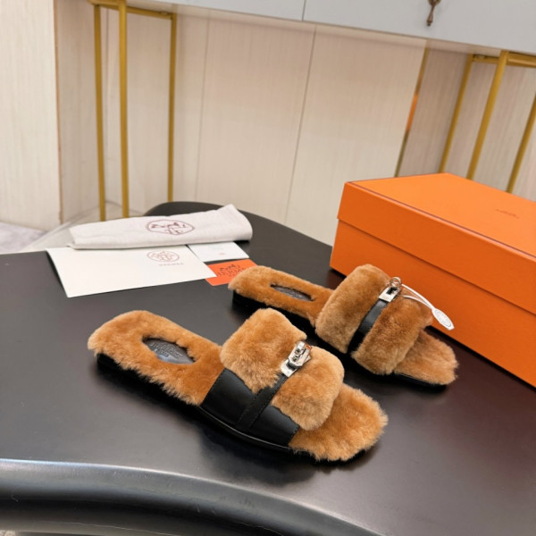 에*메스 25 가을 겨울 신상 켈리 털 슬리퍼 > HERMES
