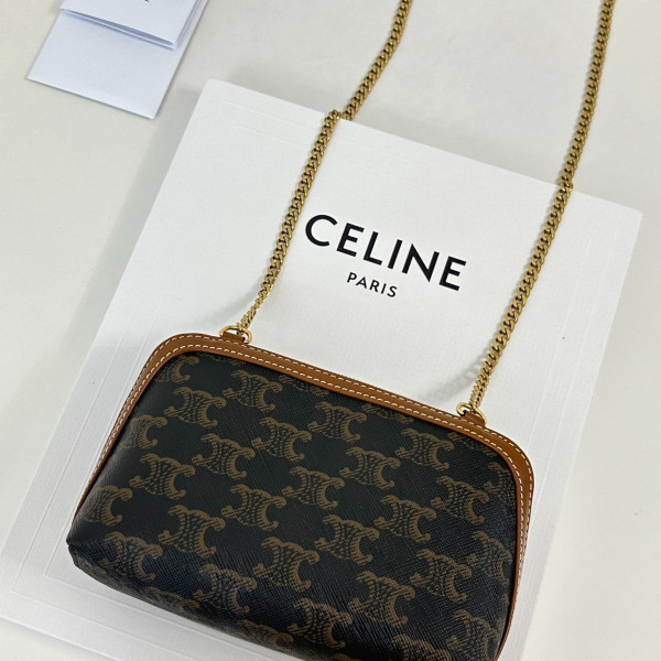 셀린느 트리옹프 캔버스 & 램스킨 체인 클러치 탄 > CELINE