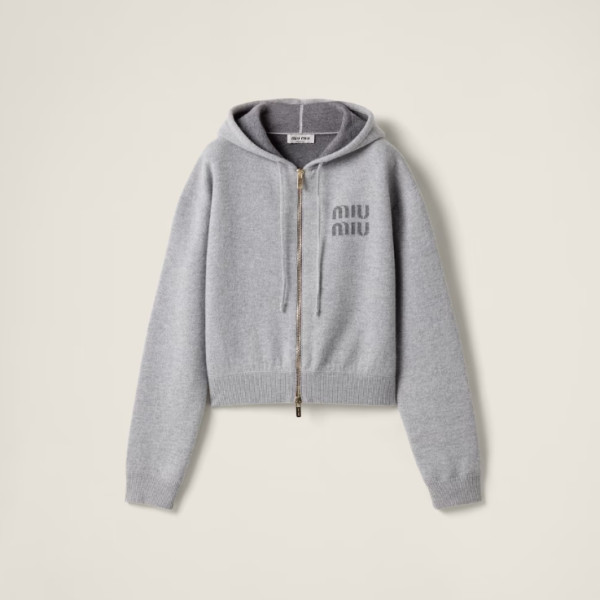 미우미우 더블 캐시미어 지퍼 후디 가디건