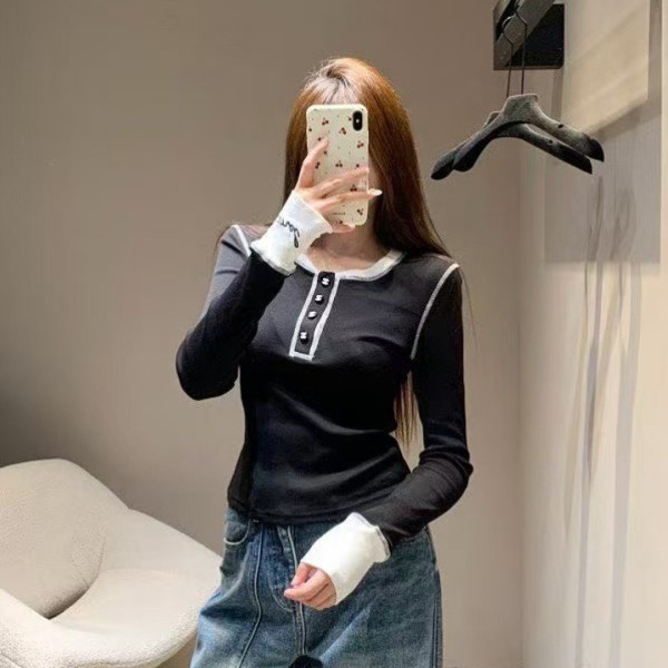 샤* 신상 배색 긴팔