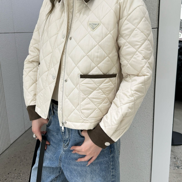 프*다 25 신상 코듀로이 넥 퀼팅 패딩