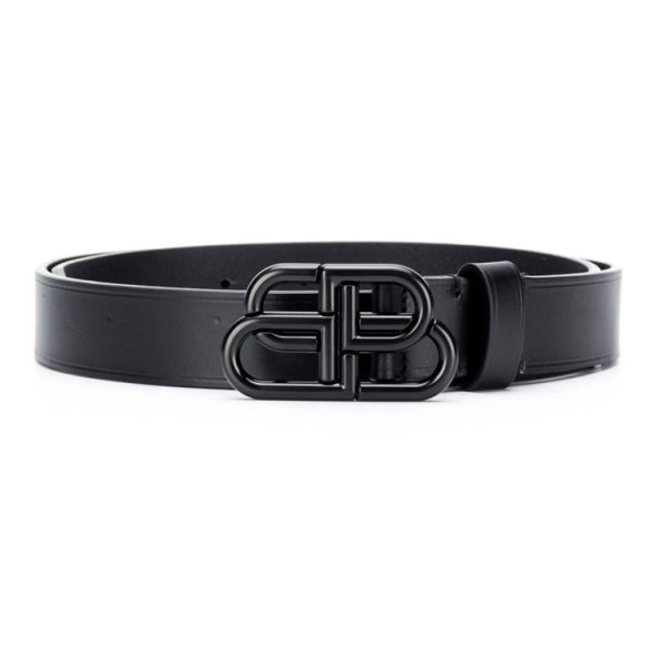 발렌시아가 BB 로고 블랙 가죽 벨트