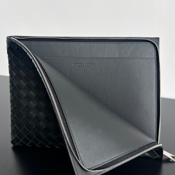 보*가베네타 인트레치아토 레더 하프 지퍼 파우치 607479
