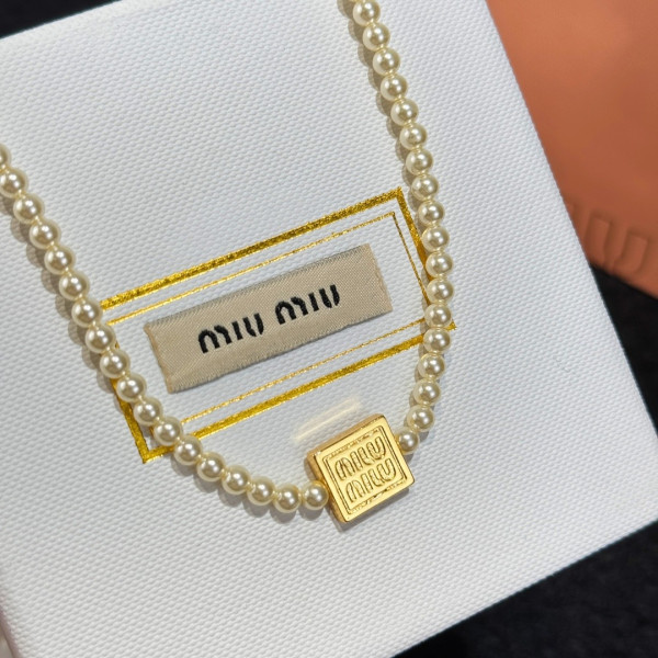 미*미우 스퀘어 이니셜 진주 목걸이