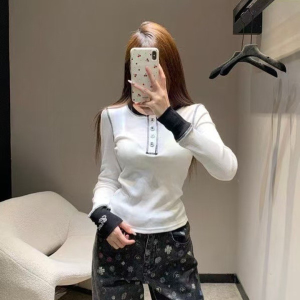샤* 신상 배색 긴팔