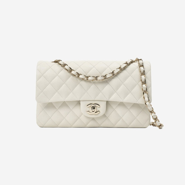 샤넬 클래식 캐비어 미디움 화이트 골드