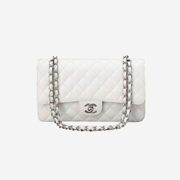 샤넬 클래식 캐비어 미디움 화이트 실버