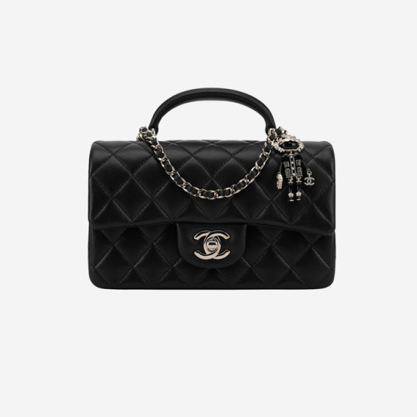 샤넬 뉴미니 플랩백 탑핸들 램스킨 블랙 골드