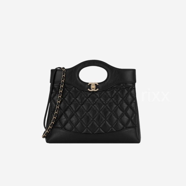 (W) 샤넬 31 미니 쇼핑백 샤이니 크럼플드 카프스킨 & 골드 메탈 블랙 【매장-800만원대】