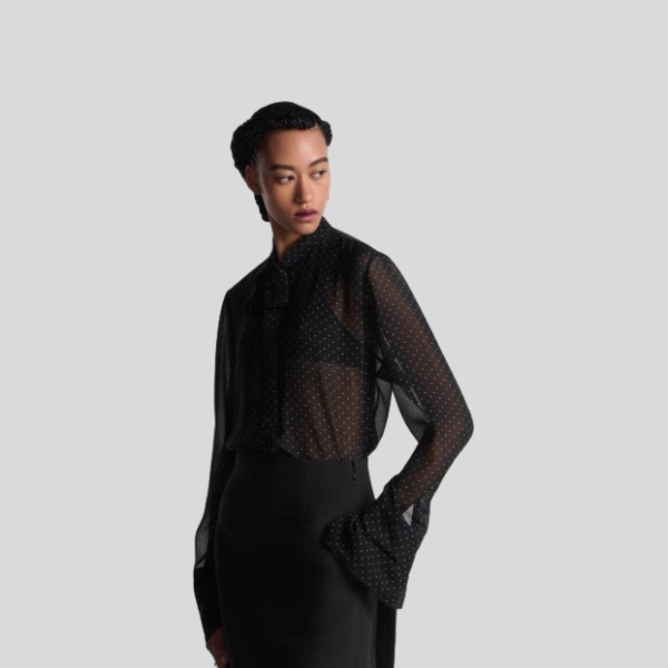 셀린느 새틴 보우 칼라 셔츠