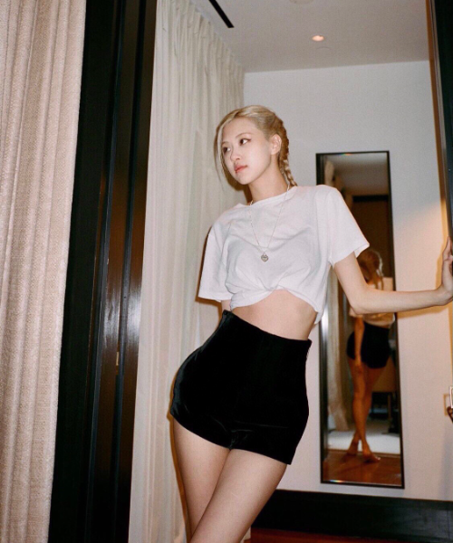생로랑 하이웨이스트 벨벳 쇼츠