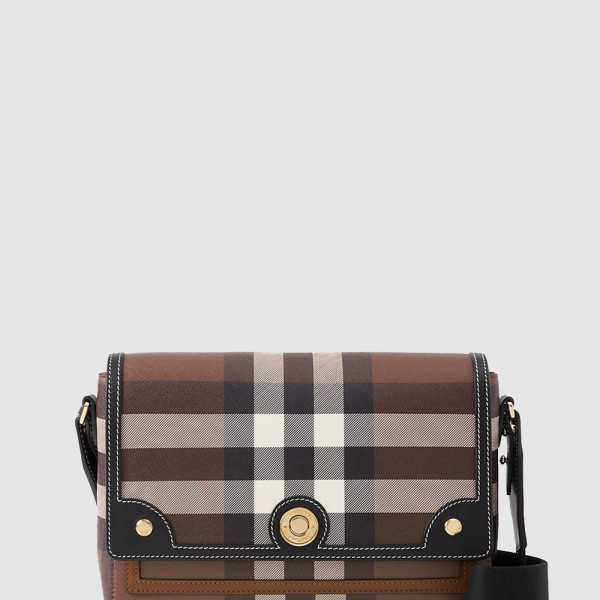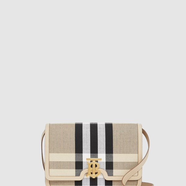 버버리 미디엄 체크 캔버스 레더 숄더백 90235651