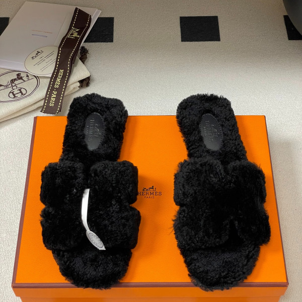 샤* 클래식 더블C 통굽 퍼 슬리퍼