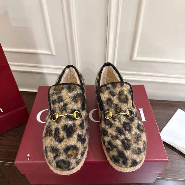 구* 홀스빗 레오파드 퍼 단화