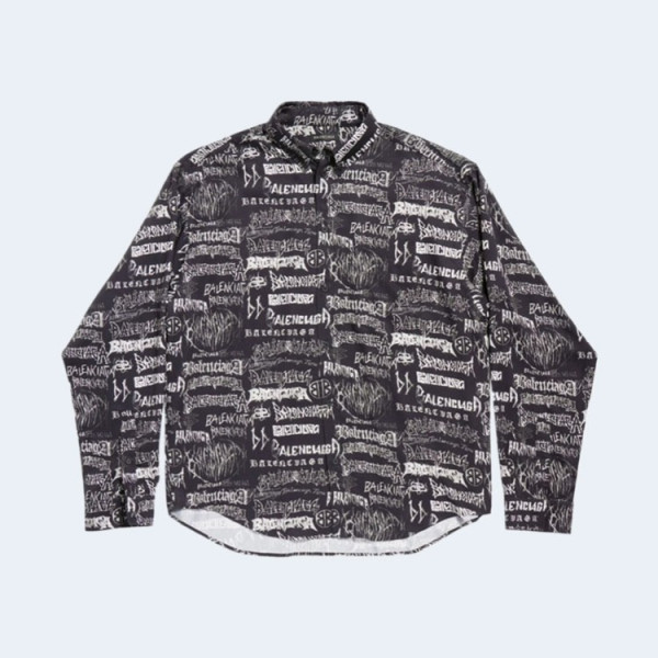 발렌시아가 로고 프린트 셔츠 블랙