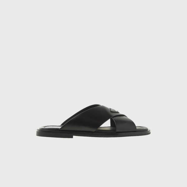 프라다 브러시드 가죽 슬라이드 슬리퍼
