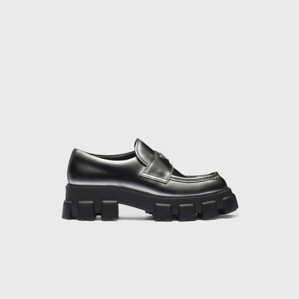 프라다 모놀리스 뉘앙스 브러시드 블랙 가죽 로퍼