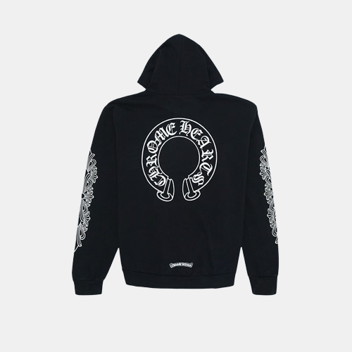 크롬하츠 블랙 토널 모노그램 스크롬 말굽 로고 집업 후디