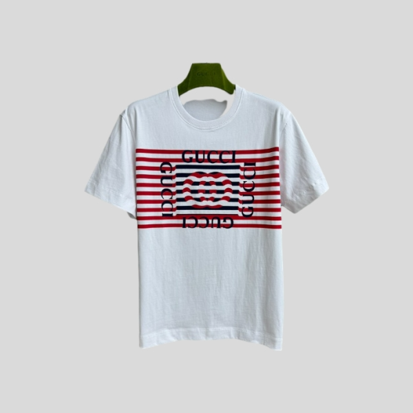 구찌 스트라이프 로고 반팔 티셔츠