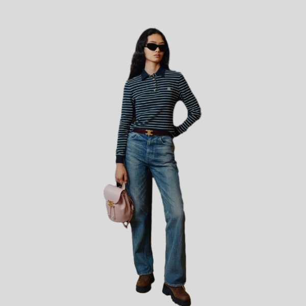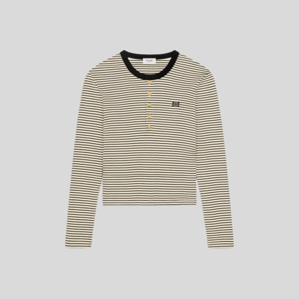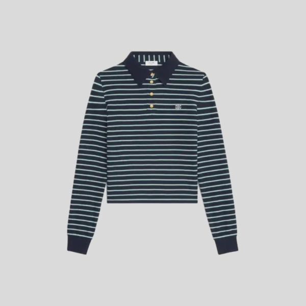 셀린느 트리오페 스트라이프 폴로 여성 카라 긴팔 티셔츠