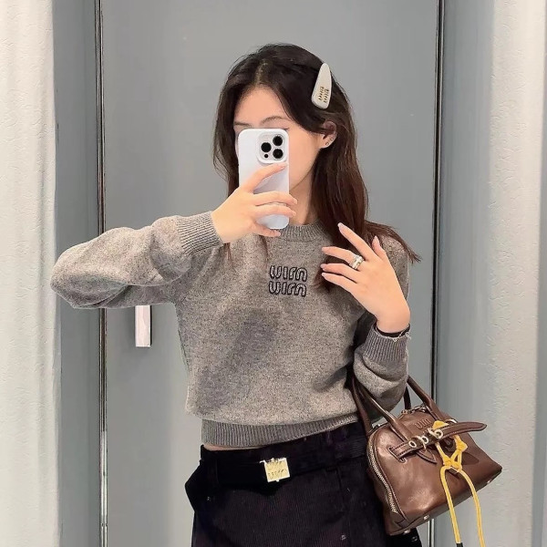 미우미우 로고 긴팔 스웨터 (블랙,그레이)