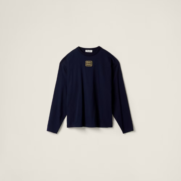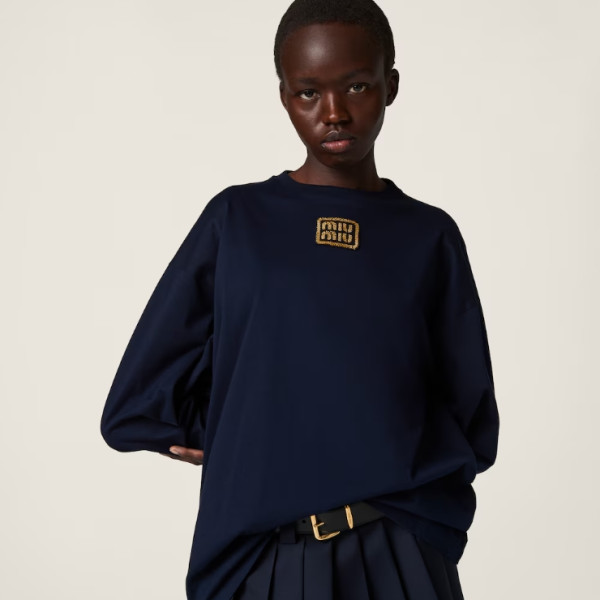 미우미우 코튼 저지 티셔츠 (네이비,화이트)