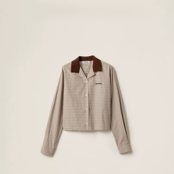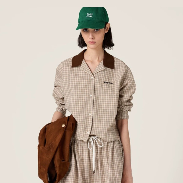 미우미우 자수 로고 코튼 티셔츠 (화이트,그레이)