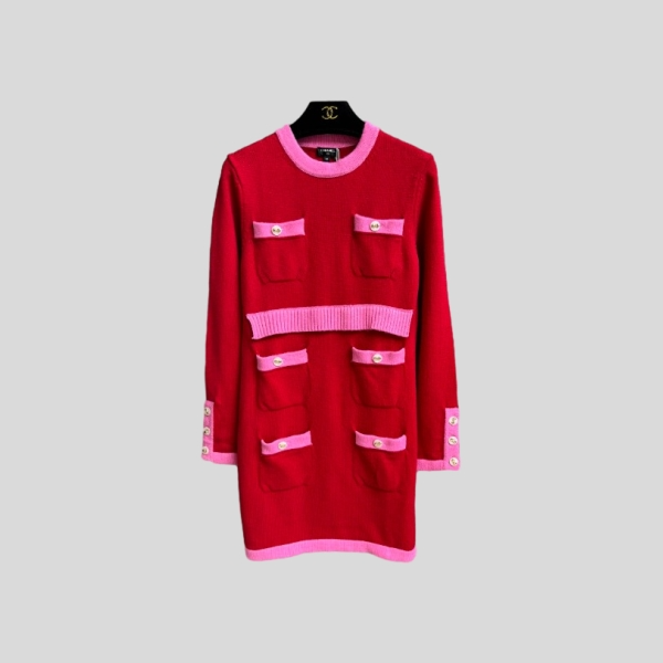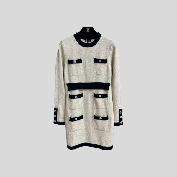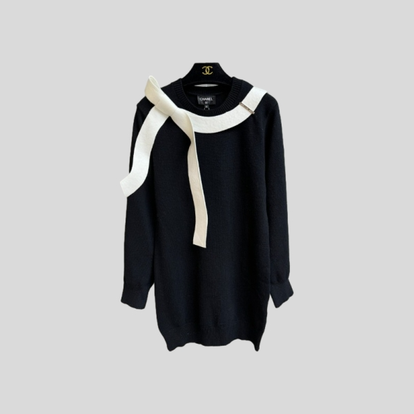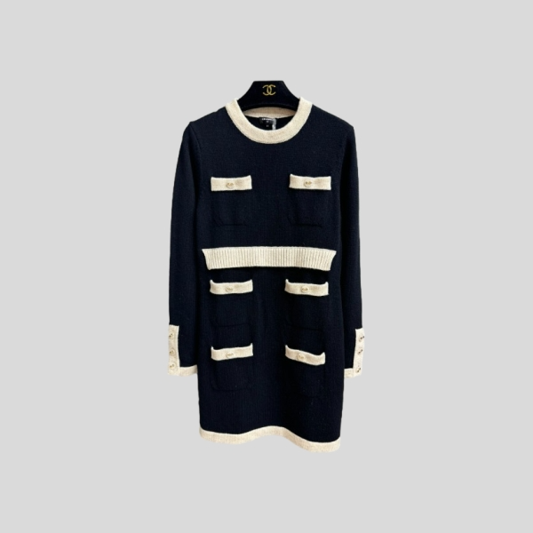 샤넬 콘트라스트 니트 드레스