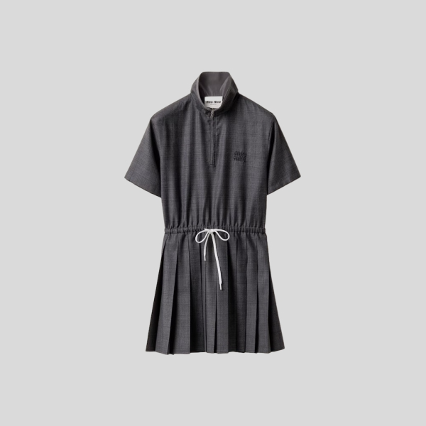 미우미우 프린스 오브 웨일즈 플리츠 쇼트 드레스