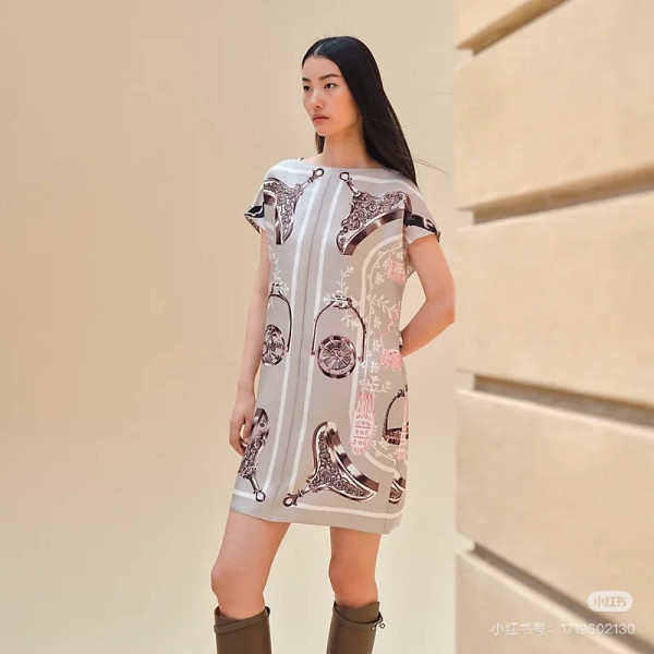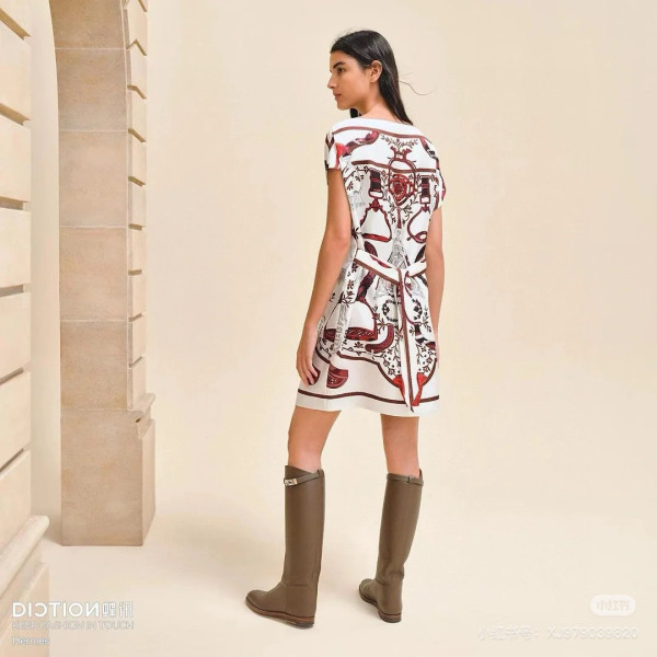 미우미우 플레드 폴로 칼라 반팔 원피스