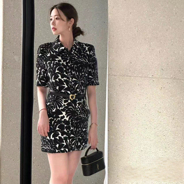 입생로랑 흑백 프린트 드레스