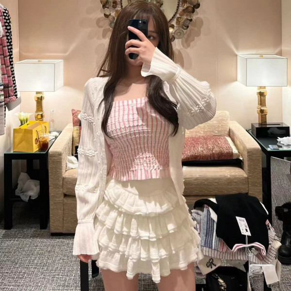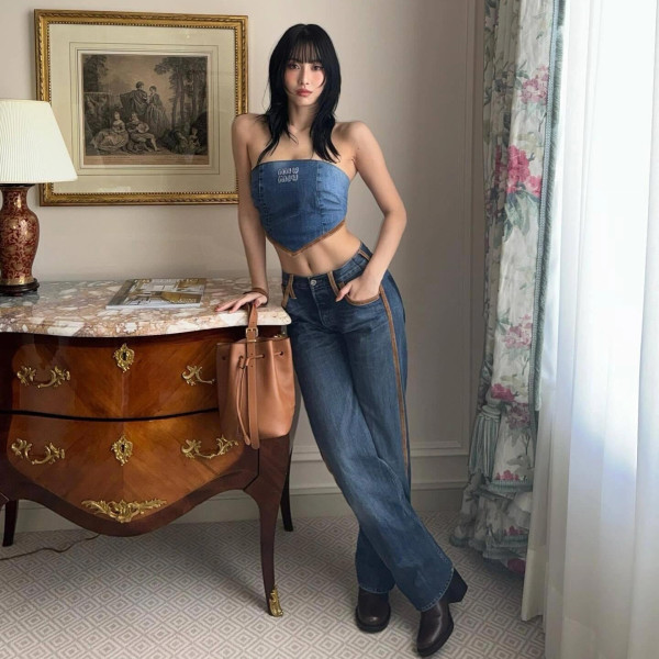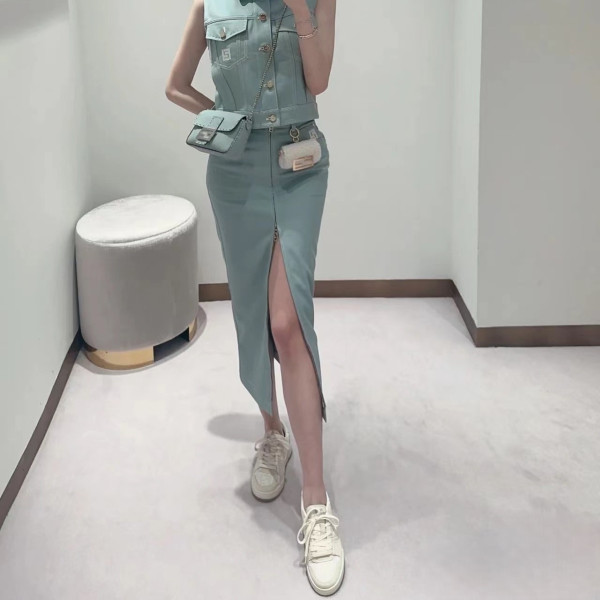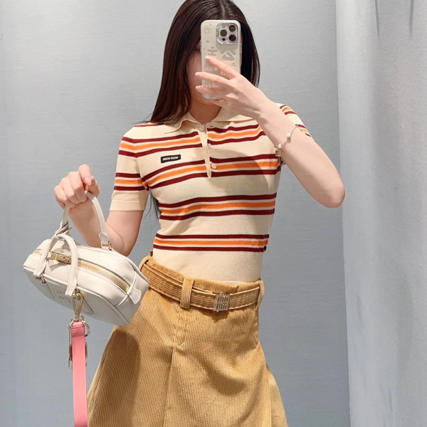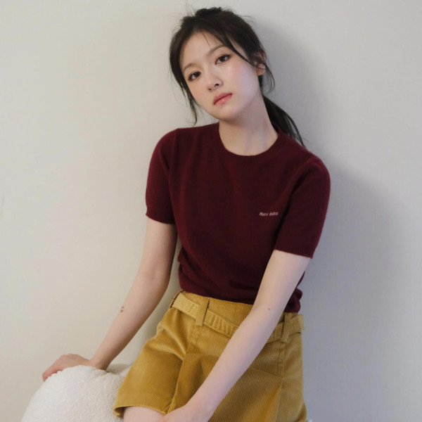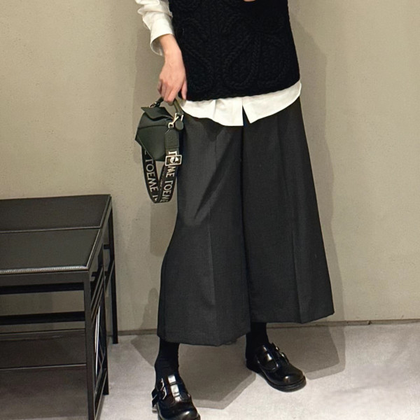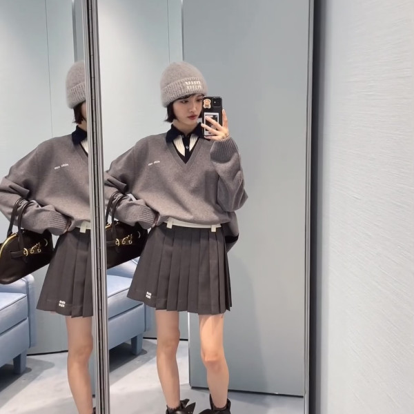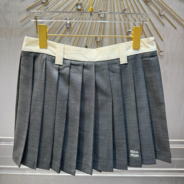 미우미우 레터 자수 가죽 로고 그레이 미니스커트