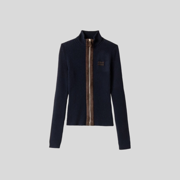 미우미우 스웨이드 패널 골지 가디건