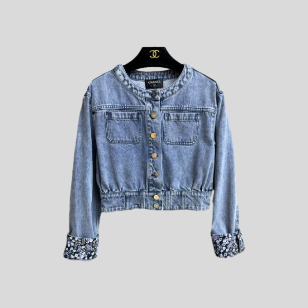 미우미우 본디드 피케 및 테크니컬 저지 블루종 자켓