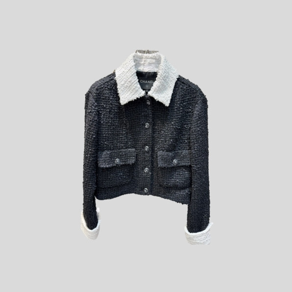 샤넬 블랙 트위드 & 화이트 라펠 숏 재킷