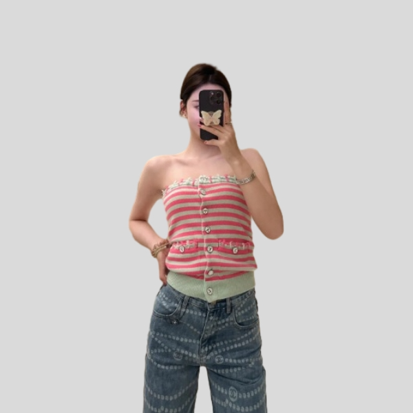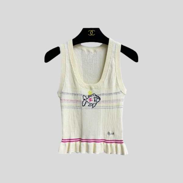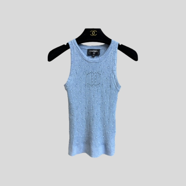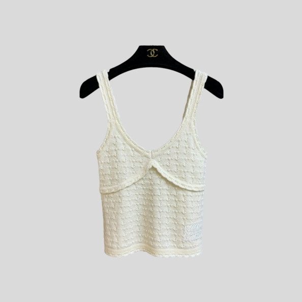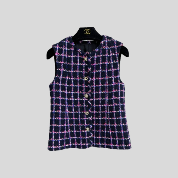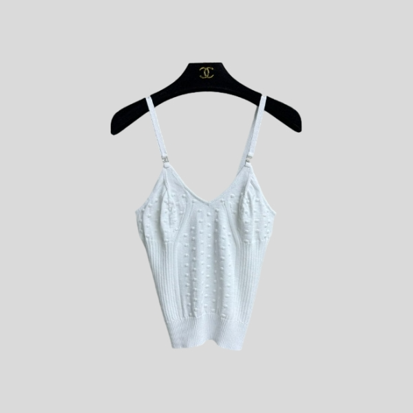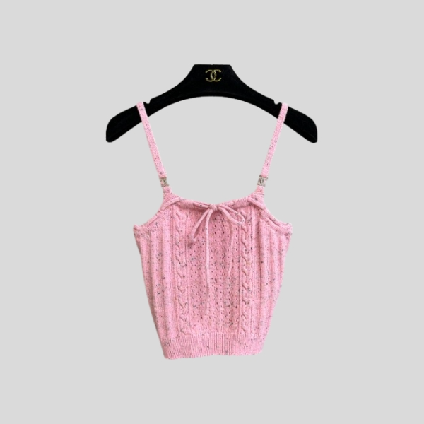 샤넬 자카드 슬리브리스 셔츠(화이트,핑크)